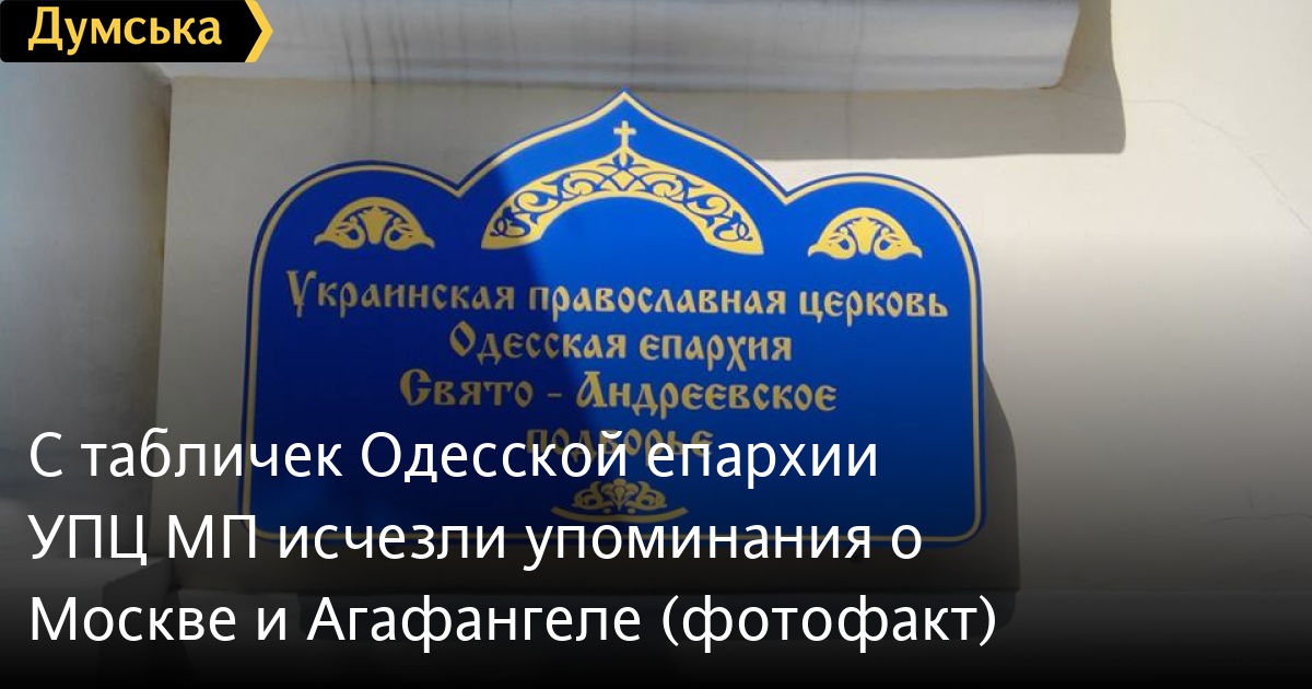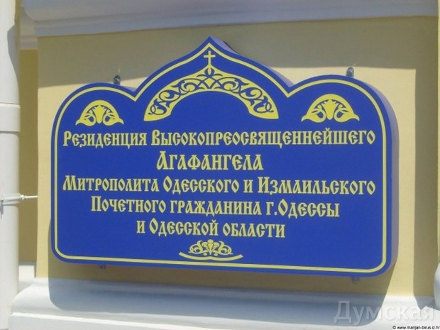 На здании Свято-Андреевского подворья (Пантелеймоновская улица) поменяли таблички. Исчезло упоминание о Московском патриархате и о том, что здесь находится резиденция митрополита Агафангела. Но на украинский Одесская епархия УКРАИНСКОЙ православной церкви все же не перешла.