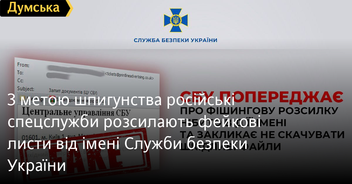З метою шпигунства російські спецслужби розсилають фейкові листи від імені Служби безпеки УкраїниФішингові розсилки електронних листів нібито від імені Служби безпеки України фіксують правоохоронці та закликають людей до пильності. Як повідомили у пресслужбі СБУ, на перший погляд листи здаються нормальними, але насправді містять файли та додатки, які під час запуску завантажують на комп'ютер шкідливе програмне забезпечення для збору конфіденційних даних. У службі зазначають, що переважно розсилка спрямована на органи державної влади. Використовувати її можуть російські спецслужби з метою шпигунства та збору інформації. Тому в СБУ закликають не відкривати файли від невідомих абонентів на електронній пошті, у месенджерах чи в смс. А якщо таке сталося, то слід перевстановити операційну систему комп'ютера та повідомити про подію в СБУ за телефоном: 0 800 501 482 та на електронну пошту: callcenter@ssu.gov.ua. СМЕРТЬ РОСІЙСЬКИМ ОКУПАНТАМ! Помітили помилку? Виділяйте слова з помилкою та натискайте control-enter |