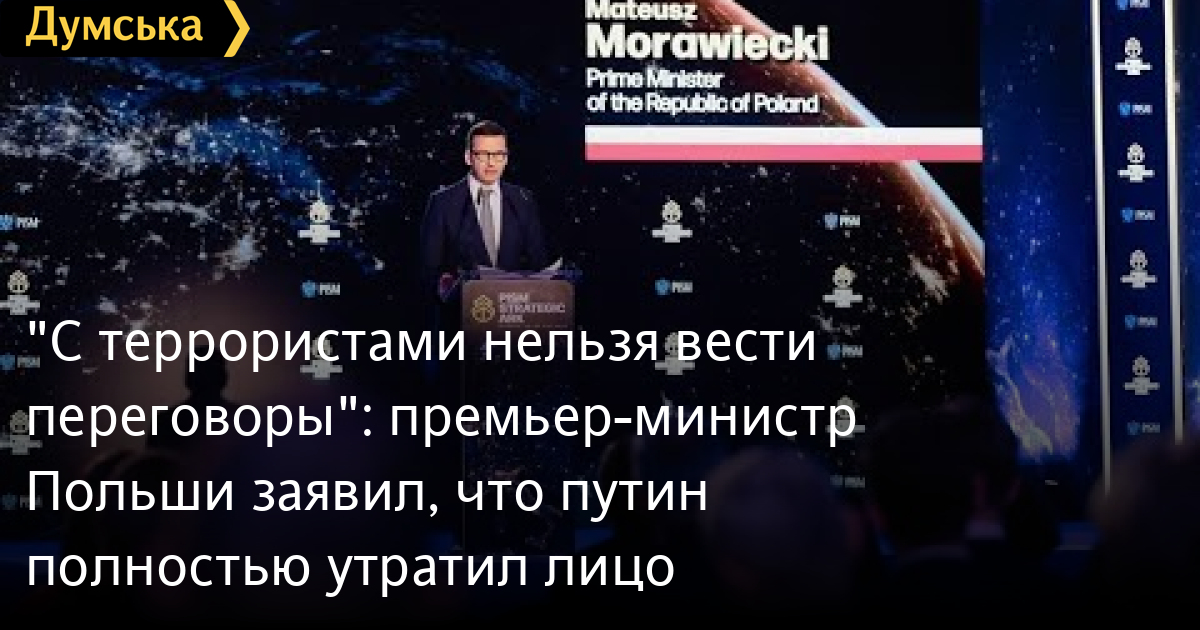 Моравецкий призвал изолировать президента рф путина и сказал, что дипломатия требует диалога, но с террористами нельзя вести переговоры.