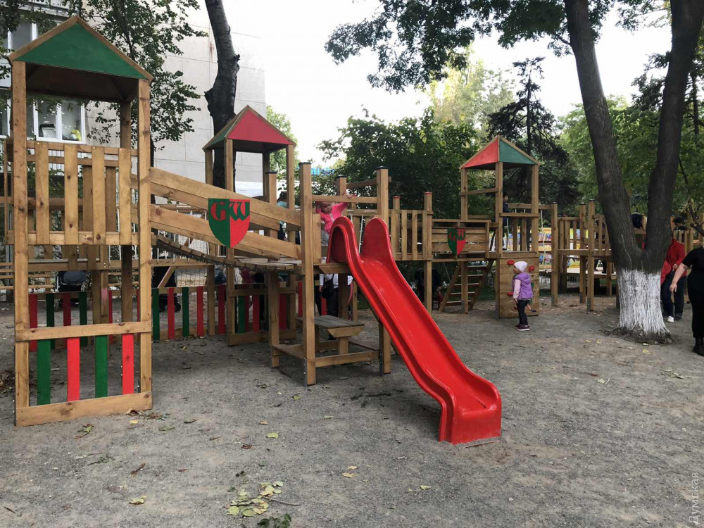 Идея создания этой детской площадки появилась больше года назад, когда владельцы торгового центра на Среднефонтанской снесли детский комплекс ради расширения парковки и не предоставили жителям района никакой альтернативы. Реализация проекта, на который ушло 790 тысяч гривен, финансировалась горсоветом за счет депутатских фондов.