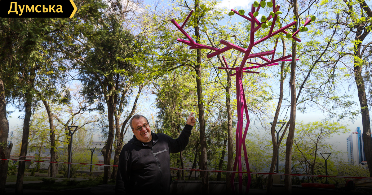 Новая скульптура в виде розового дерева, плодоносящего зелеными яблоками, монтируется прямо сейчас в Греческом парке в Одессе.