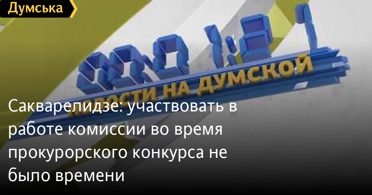 Сакварелидзе: участвовать в работе комиссии во время «прокурорского конкурса» не было времениКомиссия, которая отбирала кандидатов на должности сотрудников местных прокуратур, не отвечает за их квалификацию. СМЕРТЬ РОССИЙСКИМ ОККУПАНТАМ! Заметили ошибку? Выделяйте слова с ошибкой и нажимайте control-enter Думская ТВ. Сюжеты: