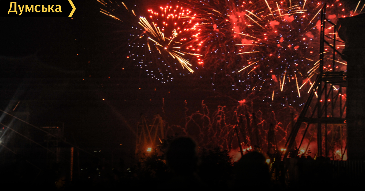 Думская, при случае скажите тем, кто это задумывал, чтоб не называли это серое действие словом «фестиваль». Надо было просто объявить, что будет длительный (45 мин с перерывами) фейерверк. В толпе прикалывались, что, наверное на мылке контейнер конфисковали и решили использовать с делом. Короче, первый блин — комом. На НГ впечатления и то лучше.