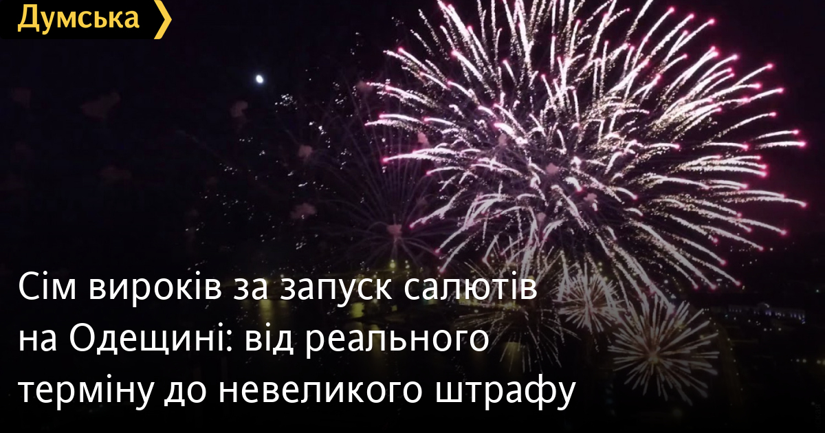 Сім вироків за запуск салютів на Одещині: від реального терміну до невеликого штрафуСім вироків за використання салютів винесли одеські суди з початку повномасштабної війни. Всього по Україні 63 таких справи, Одеська область посіла третє місце в рейтингу, повідомляє «Опендатабот». Найбільше вироків винесли в Києві — 15. На другому місці Дніпропетровська область з 8 справами, а третю позицію між собою поділили Київська та Одеська області по 7 вироків кожна. Показово, що порушників карають не тільки в адміністративному порядку. Понад половину справ кваліфікують як кримінальні за статтею про хуліганство. У кожному другому випадку суди розглядають запуск салюту не просто як порушення тиші, а як зухвалу поведінку, здатну викликати паніку і створити загрозу для людей, відзначають аналітики. Покарання варіюється від символічних штрафів до реальних термінів позбавлення волі. За дрібне хуліганство суди призначали штрафи в розмірі 51-119 гривень, тоді як у кримінальних справах суми досягали 34 тисяч гривень. Покарання за салюти під час війни коливаються від символічних штрафів до реальних тюремних термінів. За дрібне хуліганство суди призначали штрафи в 51-119 гривень, а вже в кримінальних справах суми зростали до 34 тисяч гривень. Суворе покарання отримав житель Одеси в лютому 2023 року шість місяців позбавлення волі. Він запустив феєрверк на дитячому майданчику. При цьому загальний термін його ув'язнення перевищить п'ять років, оскільки раніше чоловік був засуджений за крадіжку. Водночас жінка, яка використовувала піротехніку під час сигналу повітряної тривоги у 2022 році, відбулася штрафом у 595 гривень. СМЕРТЬ РОСІЙСЬКИМ ОКУПАНТАМ! Помітили помилку? Виділяйте слова з помилкою та натискайте control-enter |