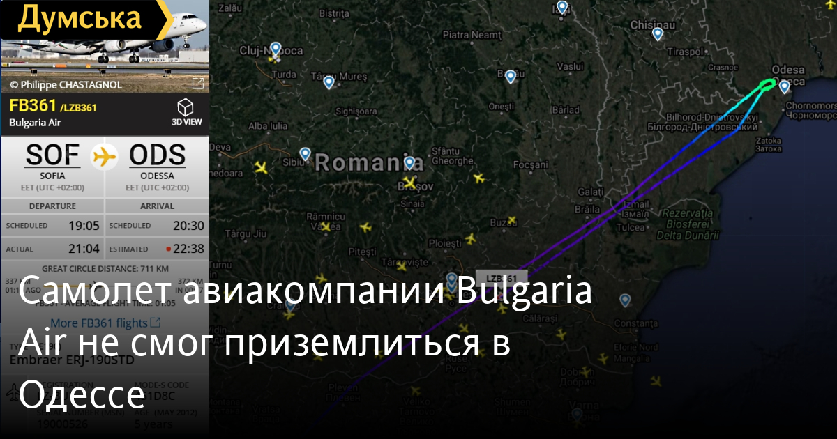 Самолет болгарского национального авиаперевозчика — авиакомпании Bulgaria Air - из-за тумана не смог приземлиться в одесском аэропорту и, покружив пять минут в зоне ожидания, ушел обратно в Софию. Болгарский Embraer ERJ-190STD вылетел из столицы с двухчасовым опозданием и в 22:00 уже был над Одессой. Обнаружив плотный туман над нашим аэропортом, экипаж не стал долго испытывать судьбу. Самолет вернулся обратно в Софию. СМЕРТЬ РОССИЙСКИМ ОККУПАНТАМ! Заметили ошибку? Выделяйте слова с ошибкой и нажимайте control-enter |