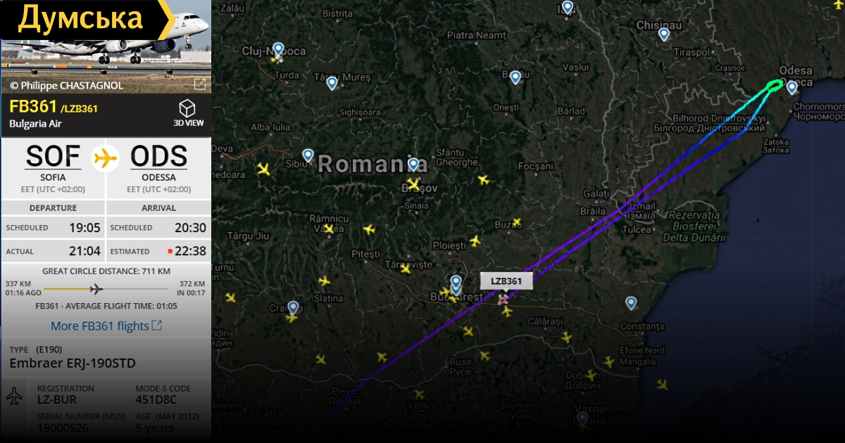 Самолет болгарского национального авиаперевозчика — авиакомпании Bulgaria Air - из-за тумана не смог приземлиться в одесском аэропорту и, покружив пять минут в зоне ожидания, ушел обратно в Софию. Болгарский Embraer ERJ-190STD вылетел из столицы с двухчасовым опозданием и в 22:00 уже был над Одессой. Обнаружив плотный туман над нашим аэропортом, экипаж не стал долго испытывать судьбу. Самолет вернулся обратно в Софию. СМЕРТЬ РОСІЙСЬКИМ ОКУПАНТАМ! Помітили помилку? Виділяйте слова з помилкою та натискайте control-enter |