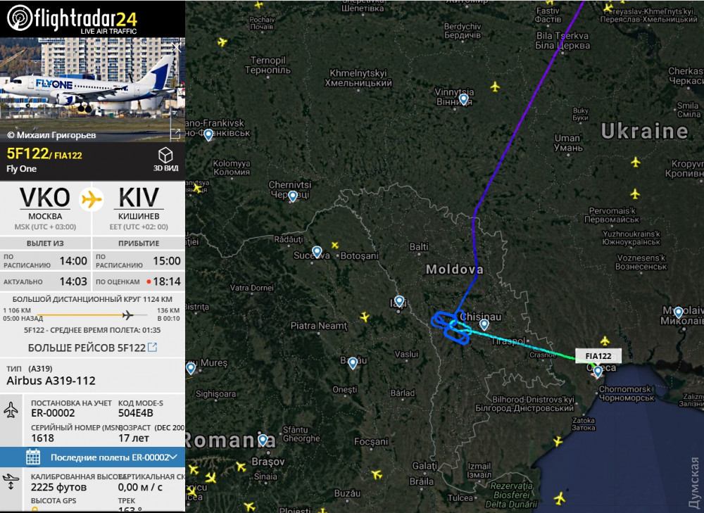 Как передает корреспондент «Думской», Airbus A319 долго кружил в зоне ожидания рядом с Кишиневом, надеясь на улучшение погодных условий: уже несколько часов там сильный туман, вертикальная видимость менее 30 метров, горизонтальная около 150.