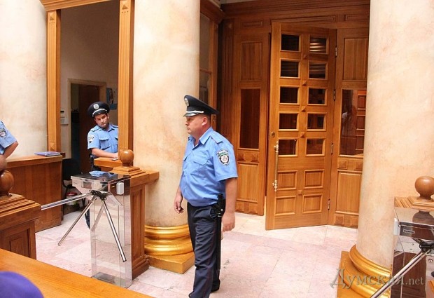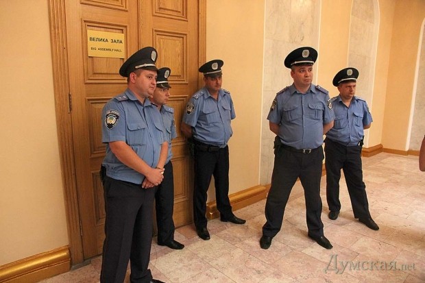 Представители Самообороны одесского Евромайдана предприняли попытку прорваться в здание городского совета, где проходит очередная сессия собрания.