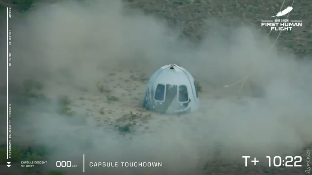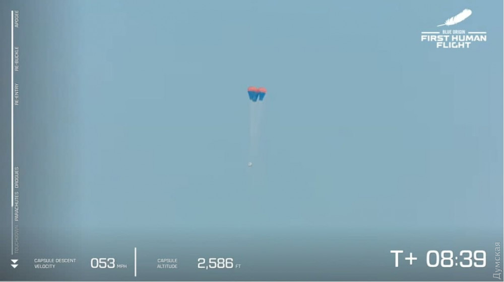 Поднявшись на высоту свыше 100 км и преодолев линию Кармана — условную границу, с которой, как считается, начинается космос, капсула с экипажем опустилась на Землю. В целом полет длился не более десяти минут. Ранее сообщалось, что пассажиры проведут в состоянии невесомости около четырех минут.
