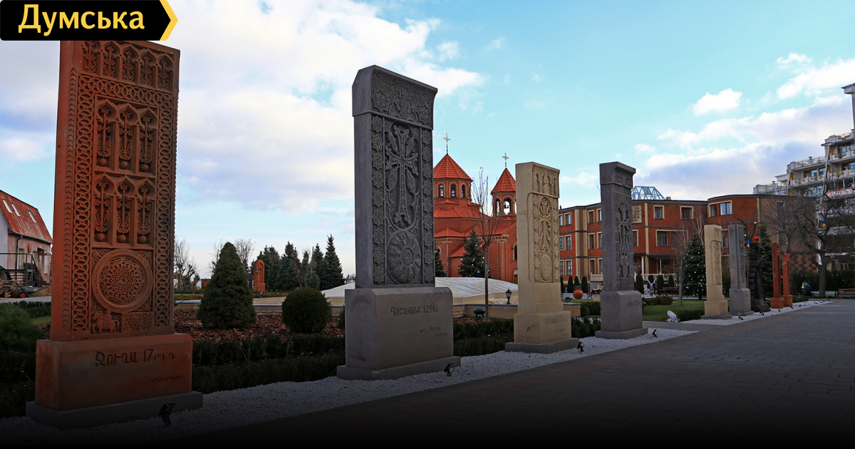 Материалы и элементы благоустройства привезли непосредственно из Армении, а все благоустройство зеленой зоны и строительство проводилось за счет армянской общины. Один хачкар водружен за средства семьи министра МВД Арсена Авакова, о чем свидетельствует надпись у основания камня. Судя по всему, работы еще не закончены — на аллее есть несколько мест, куда подвели ночное освещение, но камней напротив них пока нет.