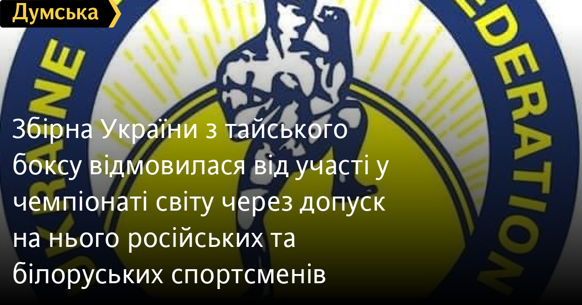 Збірна України з тайського боксу (муай-тай) не виступатиме на чемпіонаті світу через допуск на нього спортсменів із російської федерації та Білорусі.