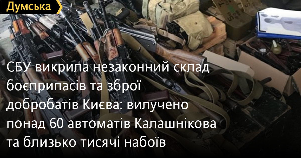 Склад незаконного зберігання зброї та боєприпасів, організований одним із добровольчих формувань, виявили у Києві.