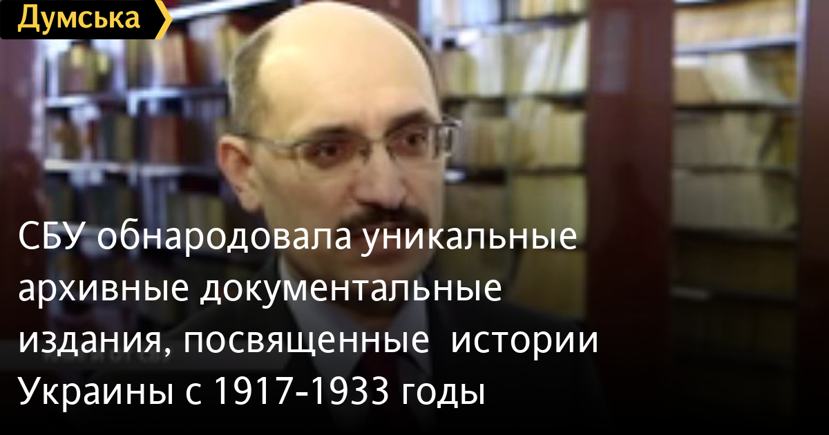 СБУ обнародовала уникальные архивные документальные издания, посвященные истории Украины с 1917-1933 годыСлужба безопасности Украины привезла в Одессу выставку и документальные издания, посвященные истории Украины с 1917 по 1933 годы. С автором одной из книг пообщался Павел Репин СМЕРТЬ РОССИЙСКИМ ОККУПАНТАМ! Заметили ошибку? Выделяйте слова с ошибкой и нажимайте control-enter Думская ТВ. Сюжеты: