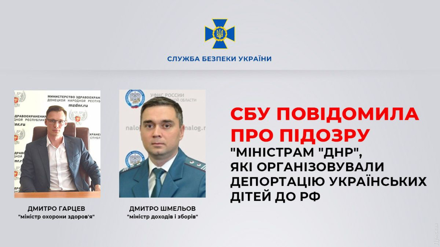 СБУ оголосила підозри двом «міністрам днр», які організували депортацію українських дітей до росіїСлужба безпеки України завершила розслідування щодо двох так званих «міністрів днр» — Дмитра Гарцева, який очолює «міністерство охорони здоров'я», і Дмитра Шмельова, голови «міністерства доходів і зборів». У СБУ повідомили, що інкримінують їм вчинення злочинів, передбачених ч.2 ст.110 Кримінального кодексу України — «посягання на територіальну цілісність і недоторканність України». Встановлено, що обидва підозрюваних брали участь в організації насильницького вивезення українських дітей на територію РФ під виглядом поїздок у літні табори відпочинку. Крім того, Гарцев займався перепрофілюванням лікарень у «днр» на госпіталі для поранених окупантів. Обидва фігуранти — громадяни росії, які входять до найближчого кола друзів «голови республіки» Дениса Пушиліна, завдяки чому в липні отримали «посади». СМЕРТЬ РОСІЙСЬКИМ ОКУПАНТАМ! Помітили помилку? Виділяйте слова з помилкою та натискайте control-enter |