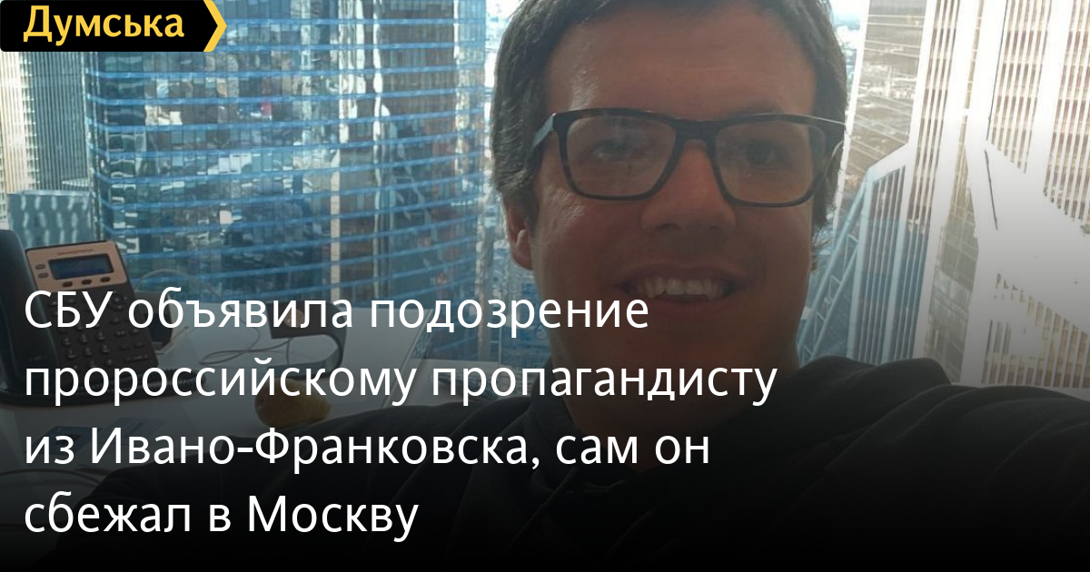 «Думская» выяснила, что речь идет о пропагандисте по имени Михаил Шпир, который родом из Ивано-Франковска, а сейчас находится в Москве. Так что СБУ сообщает о заочном объявлении о подозрении «политтехнологу».