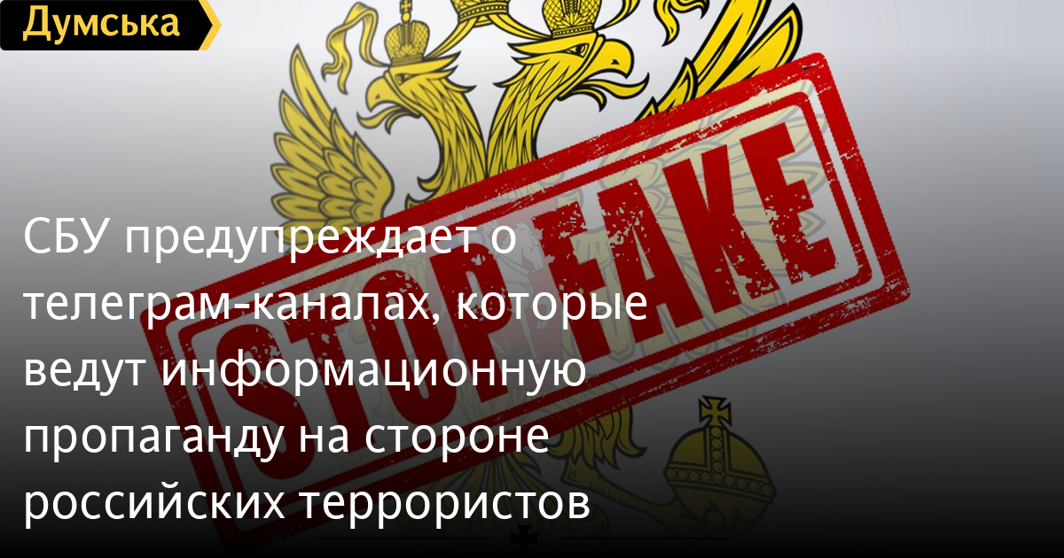 СБУ предупреждает о телеграм-каналах, которые ведут информационную пропаганду на стороне российских террористовРяд информационных телеграмм-каналов координируются российскими террористами, а именно 85-м Главным центром специальной службы ГУ Генштаба ВС РФ. Об этом сообщает Служба безопасности Украины. В частности, это «Легитимный», «Резидент», «Картель», «Сплетница», «Черный квартал», «Политический расклад», «Нетипичное Запорожье», «Тремпель Харьков», «Одесский фраер», «Днепр live», «Николаев live», «Херсон live». Именно их используют российские боевики, чтобы совершать специальные информационные и психологические операции в интересах РФ, сообщают в СБУ. Служба настоятельно просит не распространять контент из этих телеграм-каналов и отписаться от них. СМЕРТЬ РОССИЙСКИМ ОККУПАНТАМ! Заметили ошибку? Выделяйте слова с ошибкой и нажимайте control-enter |
