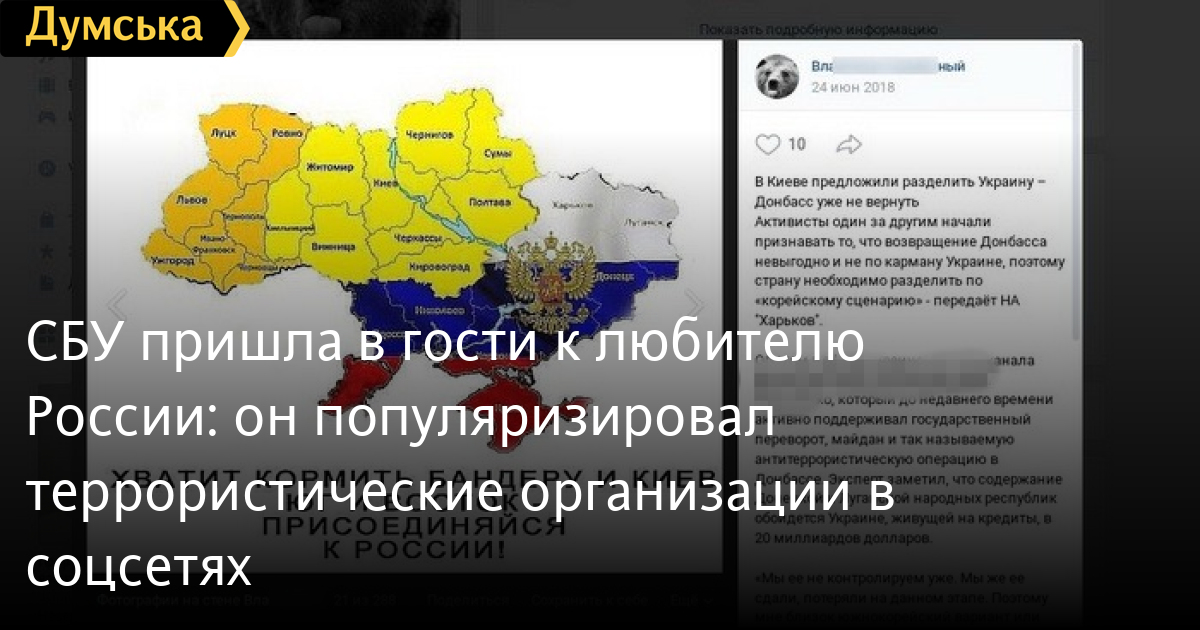 Как сообщили в пресс-центре спецслужбы, мужчина регулярно размещал на персональных страницах соцсетей информацию с призывами к изменению государственной границы и конституционного строя Украины. Также злоумышленник популяризировал террористические организации «ДНР» и «ЛНР».