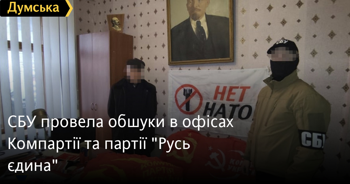 СБУ провела обшуки в офісах Компартії та партії «Русь єдина»Співробітники СБУ провели обшуки в офісах забороненої Комуністичної партії України, а також партії «Русь єдина» в Києві, Дніпрі та Кривому Розі. Також оперативники оглянули житло членів цих політсил. У Службі безпеки повідомили, що виявили там зброю, георгіївські стрічки та радянську символіку, а також листівки та методички з ворожою пропагандою. Встановлено, що ці матеріали члени КПУ планували використовувати для пропагандистських акцій у Києві та Дніпропетровській області з метою підтримки агресора. Відкрито кримінальне провадження за ст.109 Кримінального кодексу України (дії, спрямовані на насильницьку зміну чи повалення конституційного ладу, захоплення державної влади). СМЕРТЬ РОСІЙСЬКИМ ОКУПАНТАМ! Помітили помилку? Виділяйте слова з помилкою та натискайте control-enter |