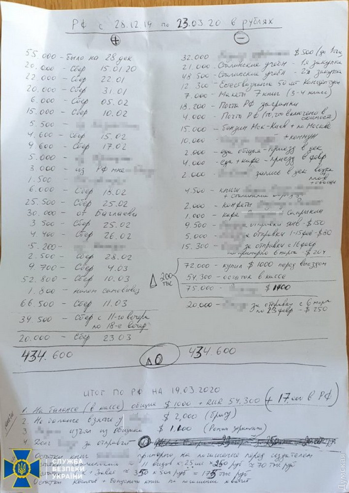 По месту жительства и временного пребывания участников группы правоохранители изъяли антиукраинские материалы, сценарии и отчеты об антигосударственных информационных кампаниях, деньги, предоставленные спонсорами из РФ, носители информации, запрещенную литературу, а также памятные награды Московского высшего военного командного училища.