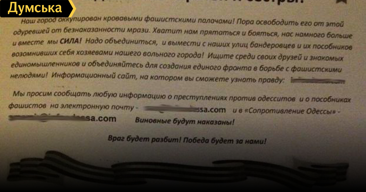 Хотел репостнуть сюда один из призывов с этого скрытого сайта, но не стал. Там просят сообщать о передвижениях ВСУ, строящихся блокпостах и укреплениях; также администрацию сайта интересуют адреса, телефоны, номера машин «свидомитов и майданутых». Копировать не стал. Но это жесть.
