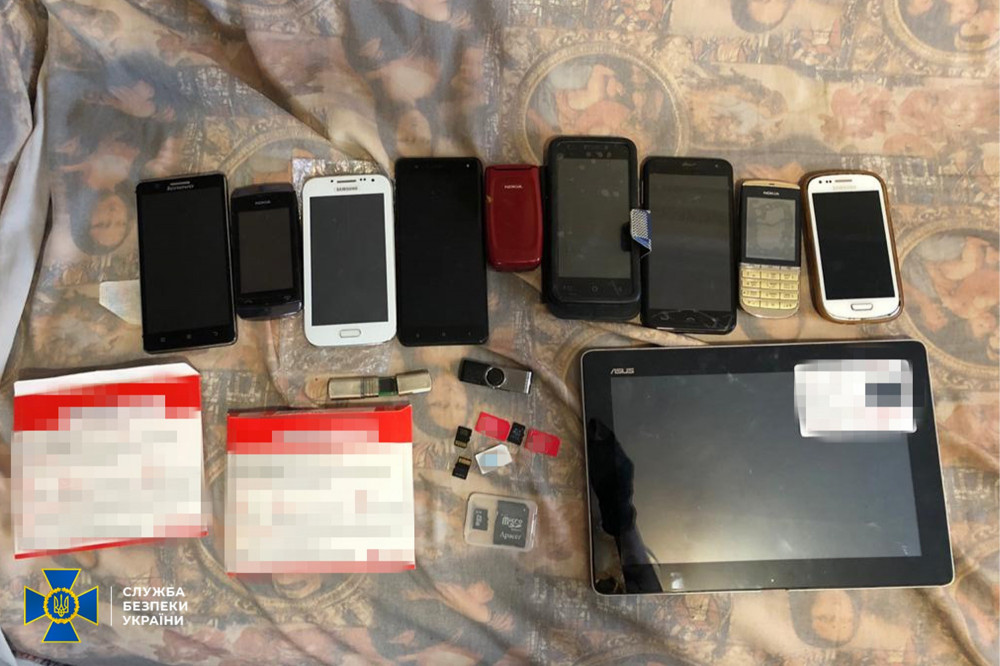 В ходе обысков по месту жительства членов агентурной сети силовики обнаружили и изъяли средства конспиративной связи, топографические карты и схемы местности с отмеченными объектами разведывательных направлений, материалы переписки между членами сети и сотрудником так называемого «МГБ ЛНР».