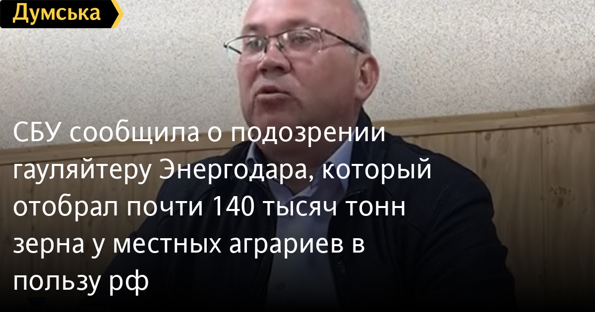 СБУ повідомила про підозру гауляйтеру Енергодара, який відібрав майже 140 тисяч тонн зерна у місцевих аграріїв на користь рфДепутату міської ради Енергодара Запорізької області Андрію Шевчику, який добровільно перейшов на бік російських загарбників, повідомили про підозру. У пресслужбі СБУ розповіли, що Шевчик, який очолив так звану «військово-цивільну адміністрацію з центром в Енергодарі», видавав злочинні розпорядження, які «дозволили» окупантам відбирати активи місцевого бізнесу. Наразі СБУ розслідує факт масштабного присвоєння загарбниками майна великих українських сільгоспвиробників Кам'янсько-Дніпровського району та Енергодару на понад 1,89 млрд грн. Правоохоронці встановили, що зрадник видав 17 травня розпорядження про обов'язкову передачу окупаційній владі майна та зернової продукції підприємств АПК. В результаті майже 140 тис. тонн українського зерна було вилучено у законних власників та вивезено на тимчасово окуповану територію Криму та порти у Краснодарському краї росії. Фігуранту повідомили про підозру за трьома статтями Кримінального кодексу України: ч. 8 ст. 111-1 (колабораційна діяльність); ч. 1 ст. 111-2 (пособництво державі-агресору) та ч. 1 ст. 438 (порушення законів та звичаїв війни). СМЕРТЬ РОСІЙСЬКИМ ОКУПАНТАМ! Помітили помилку? Виділяйте слова з помилкою та натискайте control-enter |