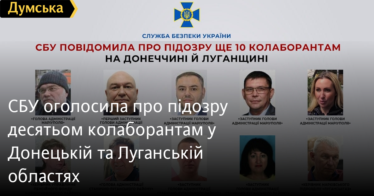 СБУ оголосила про підозру десятьом колаборантам у Донецькій та Луганській областях