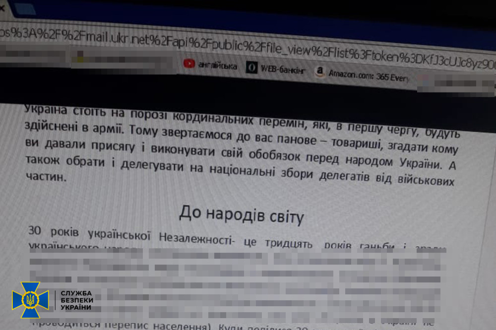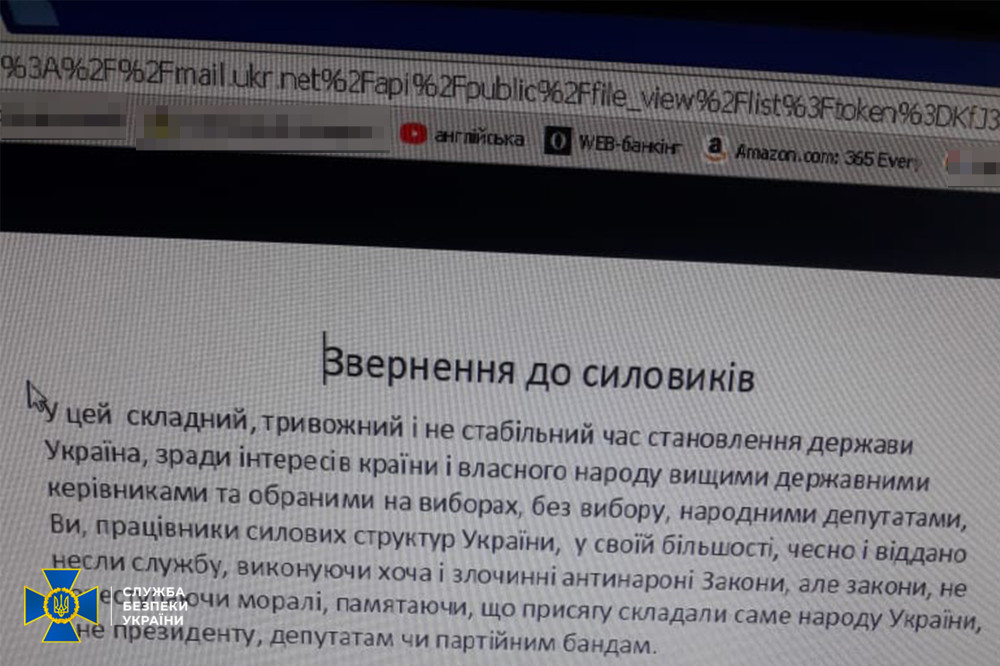 У организатора изъяли готовые манифесты к армии, силовикам и гражданскому населению Украины с призывами переходить на их сторону. Кроме того, найдено обращение к иностранным государствам с требованием признать новый «анклав».