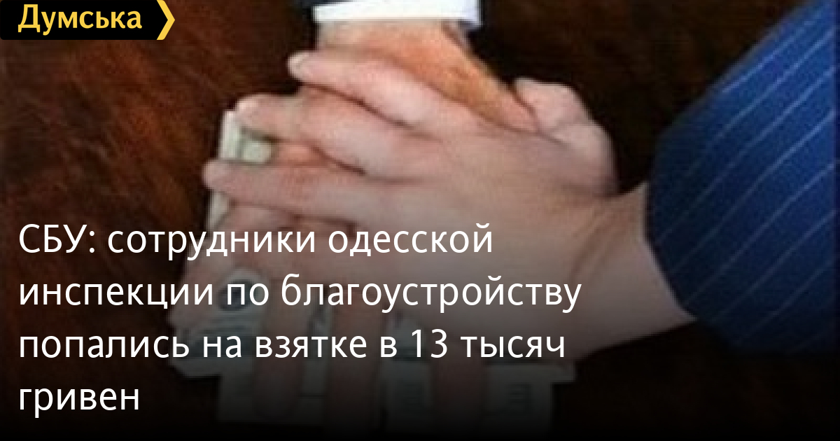 СБУ: сотрудники одесской инспекции по благоустройству попались на взятке в 13 тысяч гривенСлужба безопасности Украины обнародовала подробности задержания взяточников в муниципальной инспекции по благоустройству. Как сообщает пресс-центр СБУ, начальник сектора и главный специалист отдела требовали от местного предпринимателя 13 тысяч гривен за проведение в Одессе земляных работ. «25 сентября в рамках начатого уголовного производства правоохранители задержали злоумышленников «на горячем » во время получения ими всей суммы неправомерной выгоды», — говорится в сообщении. На следующий день задержанным объявили о подозрении в совершении преступления, предусмотренного ч. 4 ст . 368 УК (принятие предложения, обещания или получение неправомерного вознаграждения должностным лицом, по предварительному сговору группой лиц ). Санкция инкриминированной взяточникам статьи предусматривает наказание в виде лишения свободы на срок от 8 до 12 лет с конфискацией имущества. Подозреваемым избрали меру пресечения в виде содержания под стражей. В настоящее время проводится досудебное расследование. СМЕРТЬ РОССИЙСКИМ ОККУПАНТАМ! Заметили ошибку? Выделяйте слова с ошибкой и нажимайте control-enter |