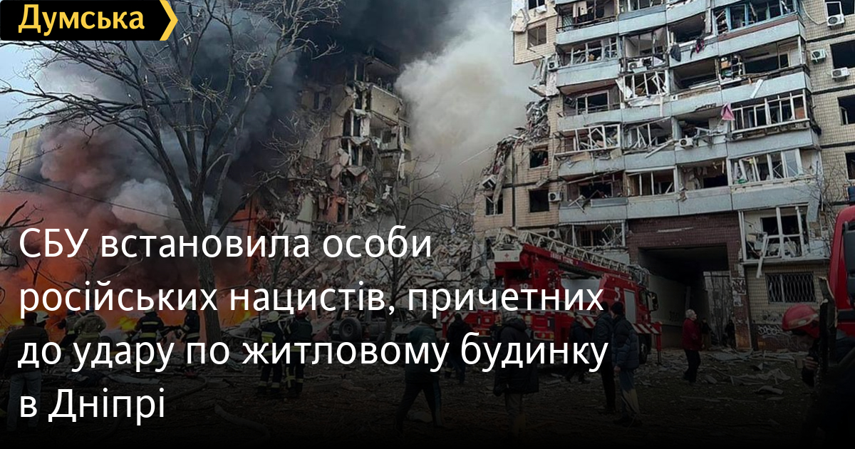 Служба безпеки України ідентифікувала російських військовослужбовців, які 14 січня завдали терористичного ракетного удару по житловій дев'ятиповерхівці в Дніпрі.