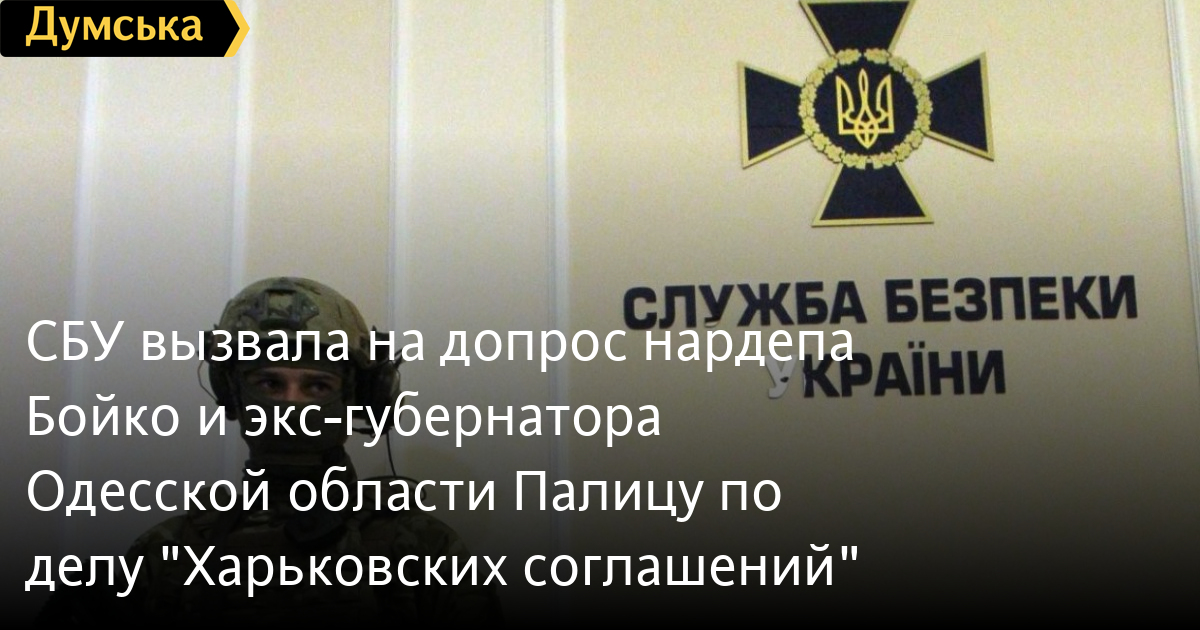 Служба безопасности Украины вызвала на допрос нардепа от ОПЗЖ Юрия Бойко, бывшего губернатора Одесской области, нардепа «За майбутнє» Игоря Палицу и еще трех человек на допрос по делу «Харьковских соглашений».