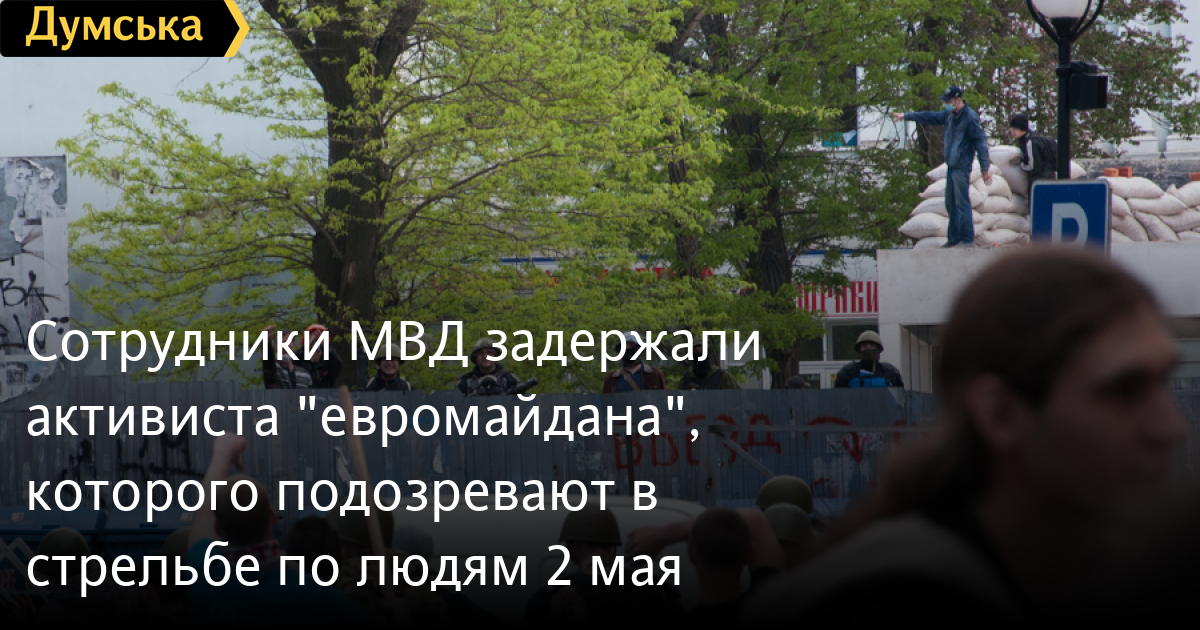 Сотрудники МВД задержали вчера активиста «Евромайдана», участника организации «Світле майбутнє України» Сергея Х., которого подозревают в стрельбе по людям в ходе уличных боев в Одессе 2 мая.