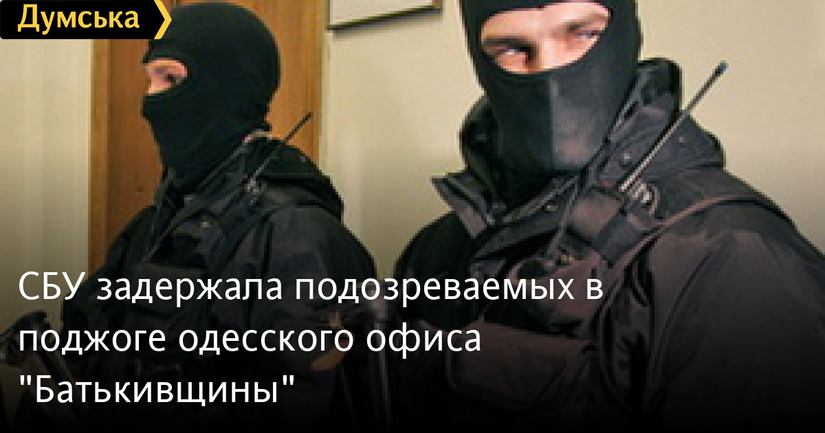 Служба безопасности Украины задержала двоих подозреваемых в попытке поджога офиса Приморской районной организации партии «Батькивщина» на Пушкинской улице.