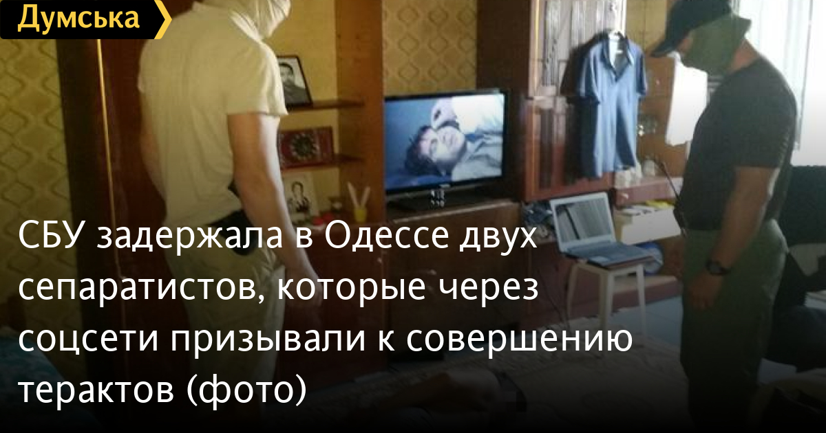 В Одессе Служба безопасности Украины задержала двоих сепаратистов, которые распространяли в социальных сетях призывы к свержению конституционного строя Украины и совершению терактов на территории нашего государства.
