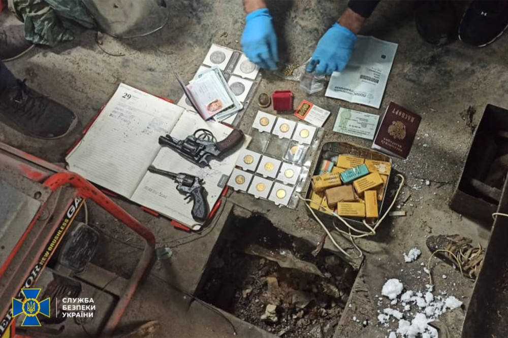 В ходе обысков у него в тайнике нашли оружие и боеприпасы, тротиловые шашки, банковские карточки и паспорт гражданина россии.