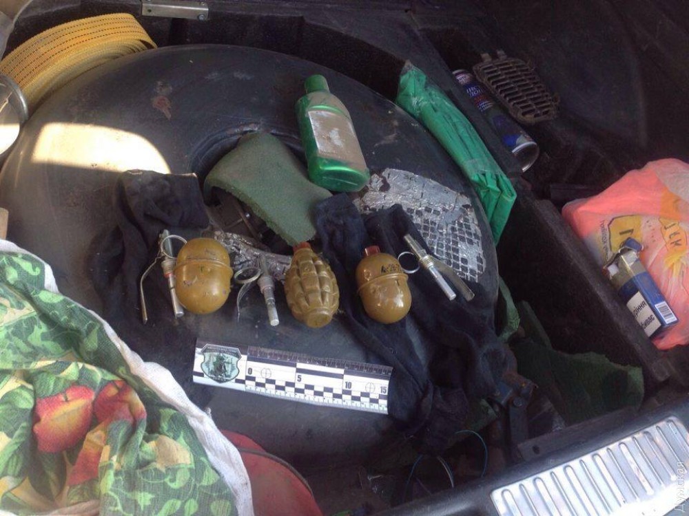 Обыскав машину задержанных, правоохранители изъяли три боевые гранаты РГД-5 и Ф-1, а также другие орудия совершения преступлений.