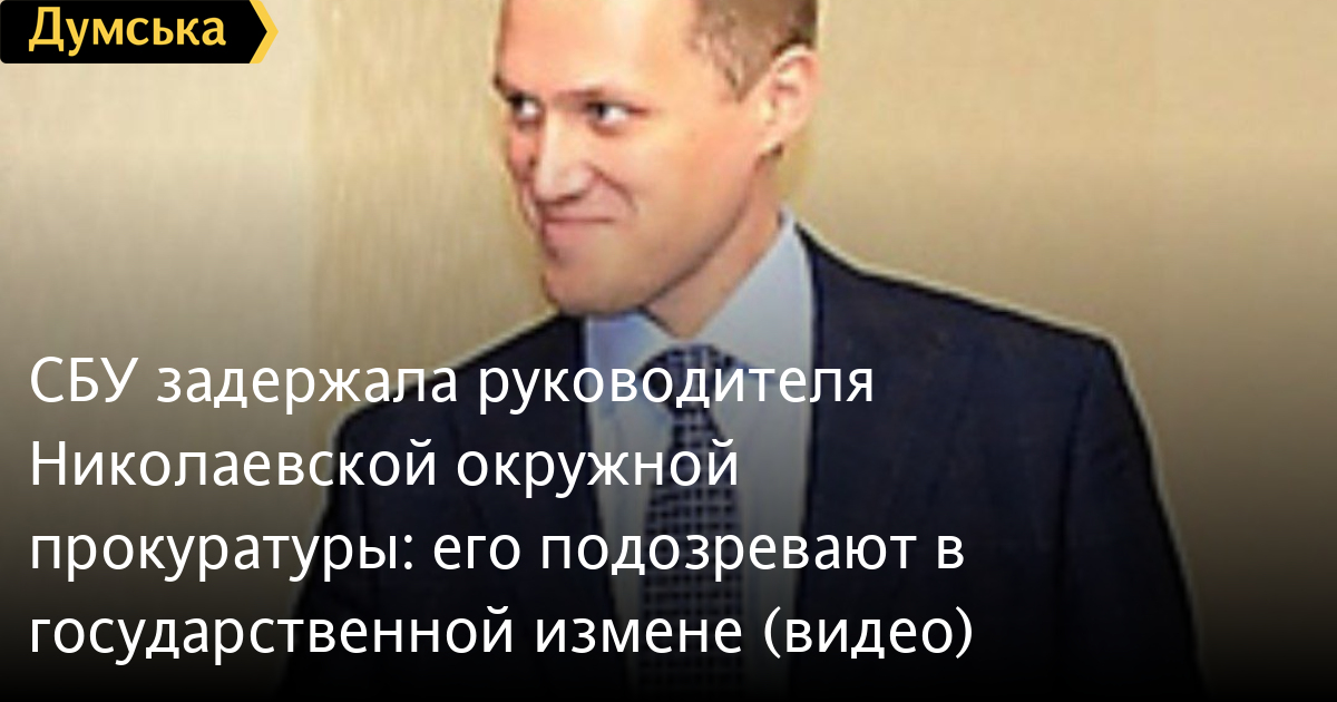 Служба безопасности Украины задержала руководителя Николаевской окружной прокуратуры.