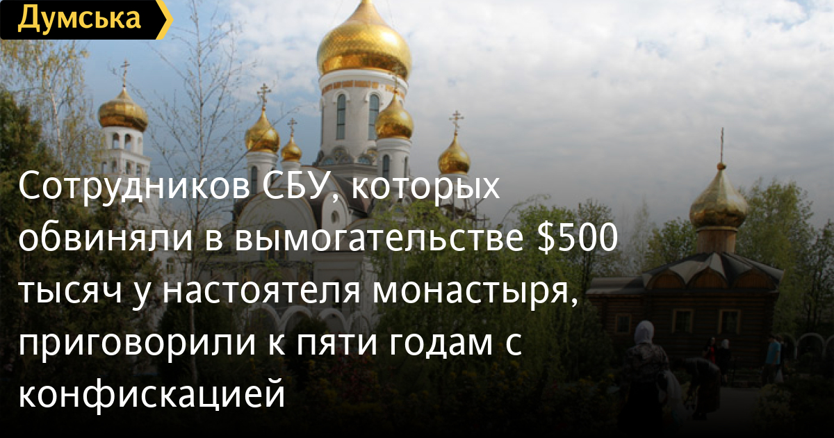 К пяти годам лишения свободы с конфискацией всего имущества приговорил Киевский районный суд Одессы двух офицеров СБУ, полковника и подполковника, которых обвиняют в вымогательстве огромной суммы у наместника Свято-Иверского мужского монастыря, викария Одесской епархии УПЦ Московского патриархата, епископа Южненского Диодора (Виталия Васильчука).