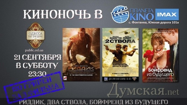 Мероприятие проводится пабликом «Одесса как она есть». Как сообщают организаторы, зрители увидят фильмы «Риддик», «Два ствола» и «Бойфренд из будущего».