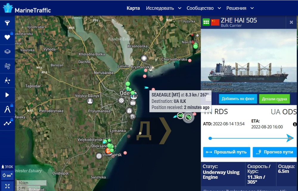 Ще один караван із двох суден очікує на дозвіл зайти в порти регіону. Суховантаж ZHE HAI 505 під китайським прапором має зайти до Одеси, а SEAEAGLE під мальтійським прапором — до Чорноморська.