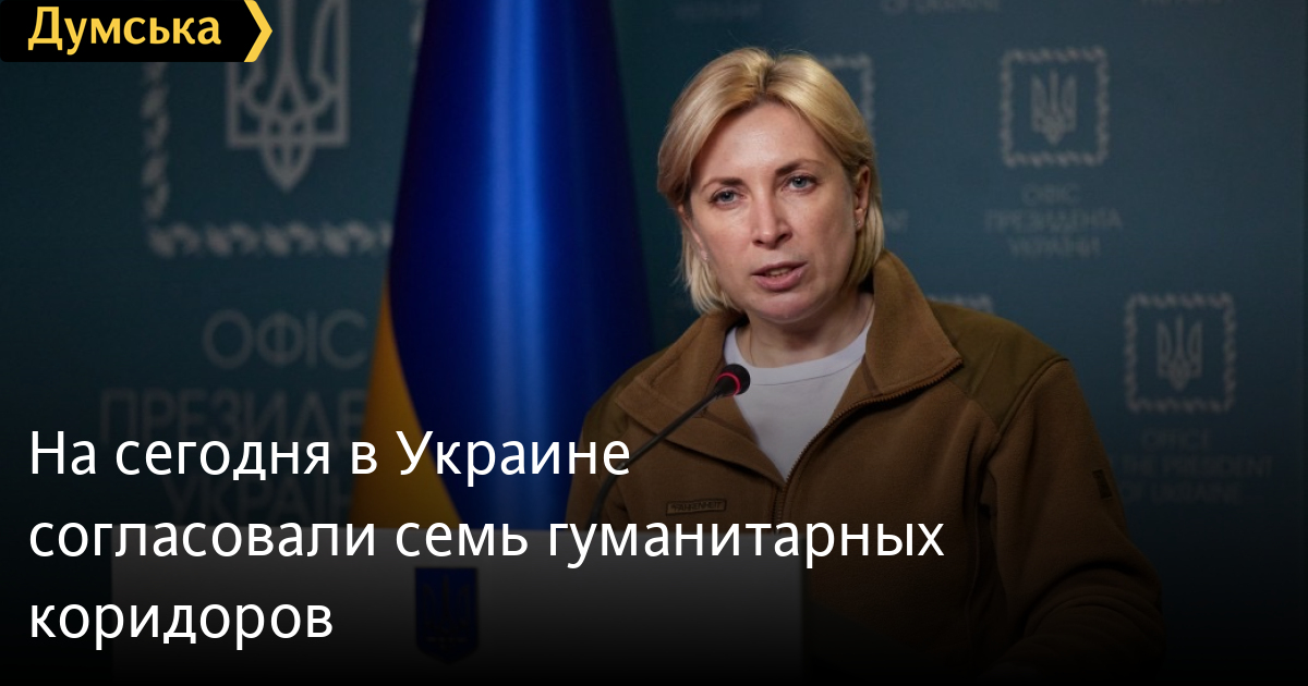 На 24 марта в Украине согласовано семь гуманитарных коридоров: в Донецкой, Запорожской и Киевской областях.