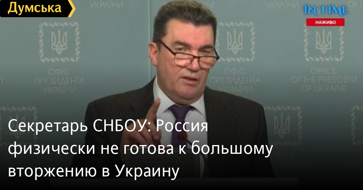 Секретарь Совета национальной безопасности и обороны Алексей Данилов заявил, что Россия физически не может сейчас совершить масштабное вторжение на территорию Украины.