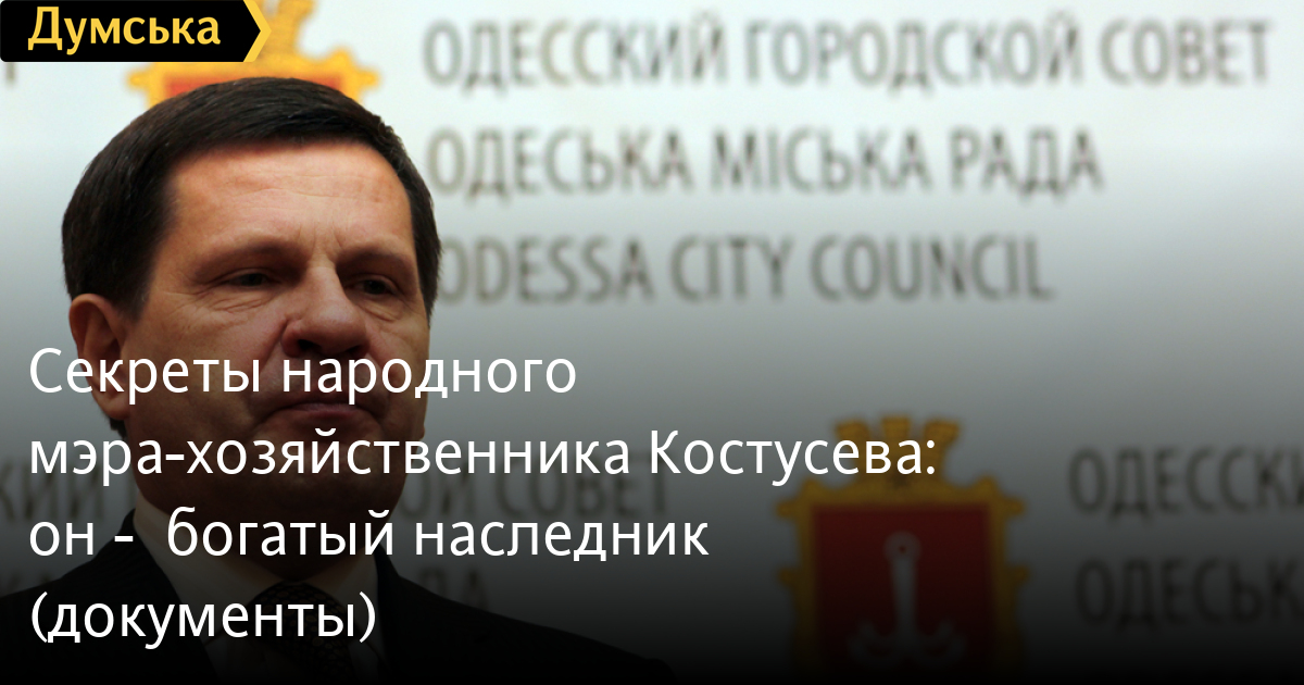 24 декабря 2010 года скоропостижно скончался его личный водитель Сергей Владимирович Плюта – онкология. Этот небогатый человек завещал Костусеву свой скромный «Мерседес Бенц S 500 4MATIC» 2010-го года выпуска (стоит 700-900 тысяч гривен). В права наследства мэр вступил в январе прошлого года, поэтому задекларировать этот доход он должен будет только сейчас.