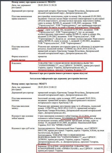 С 2005 года ООО «Укринтеринвест» числилось единоличным владельцем здания. Эта фирма расположена в Днепре, в качестве юридического адреса указан жилой дом №137 по улице Гагарина.