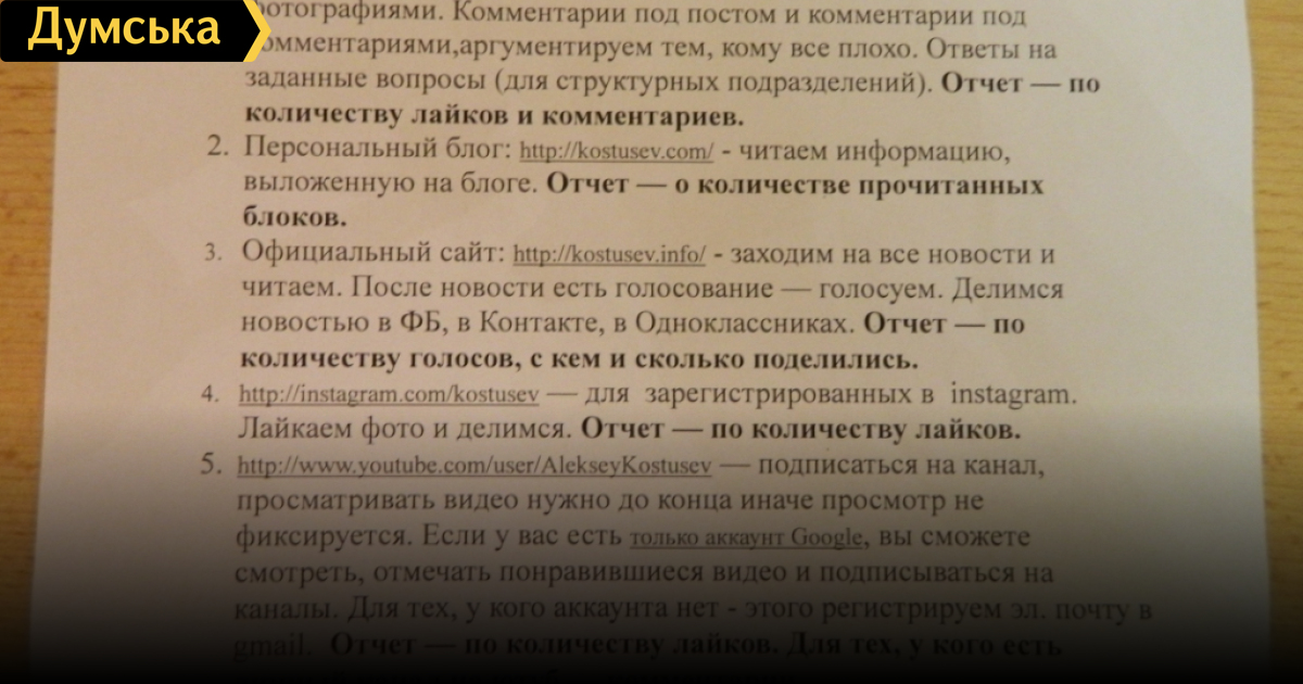 Секта свидетелей Костусева: как подчиненных мэра заставляют «любить» его в интернете (документ)«Думская» раскрыла секрет таинственной секты поклонников народнохозяйственного мэра Костусева, которая яростно защищает его в соцсетях и оставляет хвалебные комментарии под каждым мудрым замечанием руководителя. Как мы и предполагали, большинство данных граждан являются сотрудниками муниципалитета и коммунальных предприятий. Редакция заполучила любопытный документ – инструкцию для работников исполнительных органов городской власти, говорящую, как правильно любить в интернете мэра Алексея Костусева. Отныне рядовым чиновнику, бюджетнику и коммунальщику недостаточно просто «лайкнуть» понравившийся пост возлюбленного народного хозяйственника. Нет, нужно еще оставить хвалебный комментарий, обгадить злобных критиканов, а в четверг, до обеденного перерыва, письменно отчитаться по поводу проделанной работы перед непосредственным начальством. Отчеты сводятся воедино и ложатся на стол нанятым пиарщикам, которые имеют право карать лентяев. Кроме того, несчастным клеркам необходимо внимательно вычитывать бредятину, которую родной градоначальник пишет в своем персональном блоге «Костусев.Инфо»; любоваться фотками мэрского котика Матроскина с ошейником от Brioni на Instagram, ну и – самое неприятное — от начала и до конца просматривать видеоролики со сносом ларьков и прочими перфомансами городского головы. К слову, последним не занимаются даже штатные биографы Костусева с «Думской». Интересно, что самого мэра с отчетами не знакомят – по всей видимости, именно он, а не горожане является главным объектом этой масштабной сетевой кампании. Как и предшественника, Алексея Алексеевича старательно заворачивают в информационный кокон, создавая у него иллюзию всенародной поддержки. В результате мэр спокоен, а пиарщики получают свои деньги, не думая о завтрашнем дне. Между тем, прежнему городскому голове Эдуарду Гурвицу такое поведение подчиненных стоило кресла – живя в своем, искусственно сотворенном подчиненными мирке, он утратил связь с реальностью и, в конце концов, с треском проиграл выборы. Очевидно, то же самое ждет и Костусева. Что мы можем посоветовать глубокоуважаемым сотрудникам мэрии? Увольняться из-за такого пустяка, как принудительное «лайканье», конечно же, смысла нет. А вот отомстить надоевшему шефу, прислав нам или коллегам из других оппозиционных изданий какой-нибудь компромат на него – документ, свидетельствующий об очередном дерибане городской собственности, казнокрадстве и прочих прегрешениях, — это, на наш взгляд, вполне приемлемый вариант. Анонимность, само собой, гарантируем, как гарантировали ее мужественному человеку, добывшему для нас вышеупомянутую инструкцию. СМЕРТЬ РОСІЙСЬКИМ ОКУПАНТАМ! Помітили помилку? Виділяйте слова з помилкою та натискайте control-enter