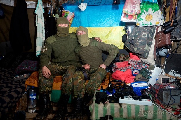 В Мариуполе нас встречает заместитель командира «Одессы» с позывным «Рупор» – крепкий и улыбчивый мужчина лет 45. Рупор, как и остальные одесситы, защищает северо-восточные рубежи Мариуполя с сентября, и о том, что он предпочел восток Украины более безопасным местам, не знают даже его родные. Как показало общение с сослуживцами офицера – это, скорее, правило, чем исключение.