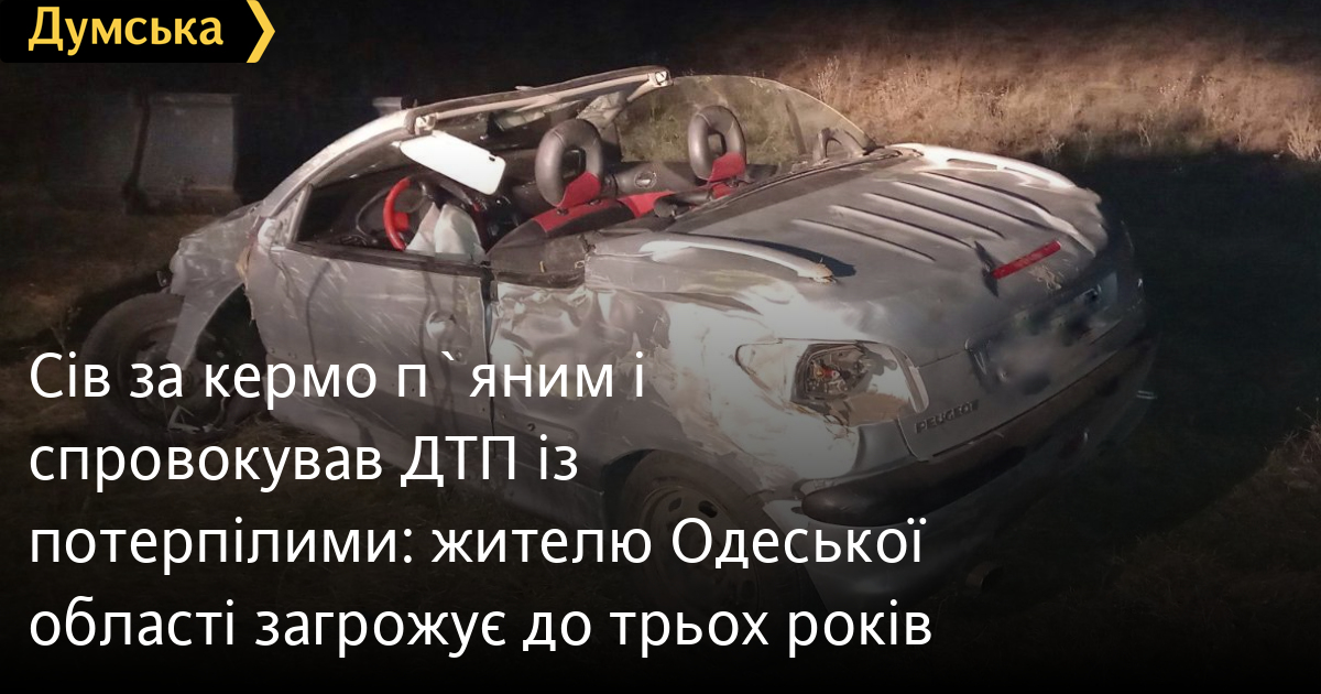Сів за кермо п`яним і спровокував ДТП із потерпілими: жителю Одеської області загрожує до трьох років24-річний житель Березівського району, який, перебуваючи в стані алкогольного сп'яніння, спричинив ДТП із потерпілими, опиниться на лаві підсудних. Як повідомили у пресслужбі поліції Одеської області, аварія сталася в березні в селі Яснопілля. Чоловік підвозив двох дівчат 17-ти і 18-ти років і двох чотирирічних близнят. Він перевищив швидкість, не впорався з керуванням і з'їхав з дороги, після чого автомобіль перекинувся. Унаслідок ДТП сам водій і старші дівчата дістали травми і були госпіталізовані. Молодші дівчатка не постраждали. Перевірка показала, що водій був нетверезий. Йому висунули обвинувачення за ч. 1 ст. 286-1 КК України і направили справу до суду. Тепер чоловікові загрожує до трьох років позбавлення волі з позбавленням права керувати транспортними засобами на строк від трьох до п'яти років. Помітили помилку? Виділяйте слова з помилкою та натискайте control-enter Новини по цій темі: 30 серпня 2025: Машина вилетіла в кювет: мер Рені потрапив в аварію, його мати загинула, а маленький син у лікарні (фото) 18 серпня 2025: Троє загинули, один у лікарні: на трасі Одеса-Рені водій Mercedes не пропустив фуру (фото) 28 липня 2025: П'яний на "Ягуарі" або гіпертонік? Звільнений топ-посадовець одеської поліції хоче повернутися на службу 2 квітня 2025: В Одесі водій BMW спровокував аварію, в якій постраждали п`ятеро людей, і втік (фото, відео) |