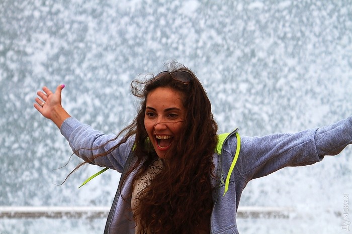 Ближе к вечеру начало немного штормить и волны от контакта с парапетом набережной превращались в миллионы звенящих капель. Многие затеяли с морем опасную игру, подходили ближе к воде, а в момент, когда водяной столб поднимался ввысь, пытались спасаться бегством. Не всем это удавалось, многих окатило с головы до ног.