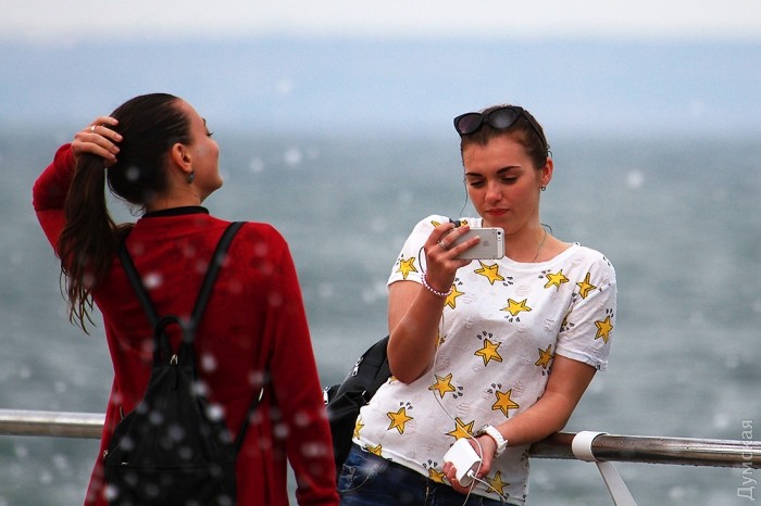 Сотни одесситов и гостей города, несмотря на не совсем пляжную погоду, прогуливались сегодня по городским набережным.