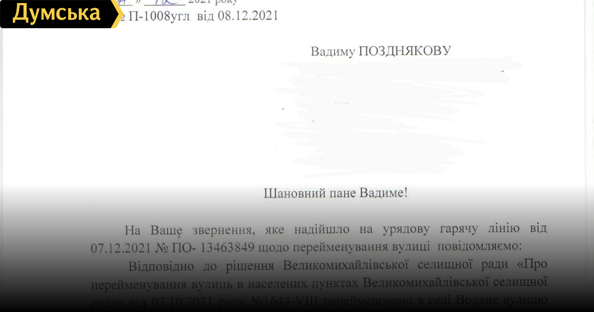 В селе Водяное Раздельнянского района переименовали улицу Чапаева. Теперь она стала Независимой. Об этом сообщают представители проекта «Декомунізація. Україна». Секретарь сельсовета Юрий Тышлер заявил, что соответствующее решение принял сельсовет. СМЕРТЬ РОСІЙСЬКИМ ОКУПАНТАМ! Помітили помилку? Виділяйте слова з помилкою та натискайте control-enter Новини по цій темі: 24 вересня 2025: Така різна декомунізація: в Одесі перейменували парк, дві вулиці та розбили погруддя Посмітного 19 травня 2025: Розбита дошка Маринеско і погрози «головному» Пушкіну: деколонізатори не відступають попри побої |